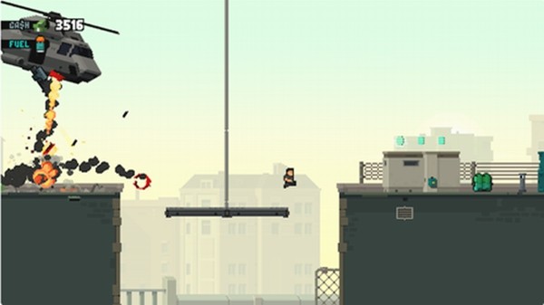 以简洁风格设计的单键点击和跳跃游戏,采用经典动画片风格的像素图像。