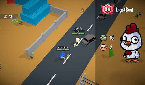 本游戏是一款简约风格的战斗大逃杀游戏,设定在卡通风格的僵尸启示录世界中,提供休闲的游戏体验。